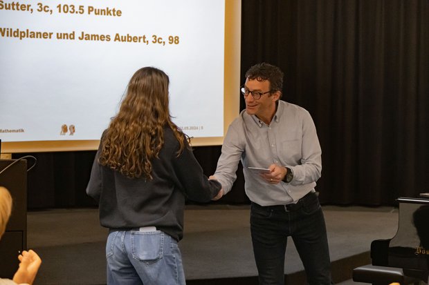 Alle Teilnehmerinnen und Teilnehmer des Känguru-Wettbewerbs haben ein Diplom und ein Knobelspiel erhalten. Die Siegerinnen und Sieger in den sechs Jahrgangsstufen an der KZI durften zudem an der Preisverleihung in der Aula einen Preis entgegennehmen und sich über den Applaus ihrer Mitschülerinnen, Mitschüler und Lehrpersonen freuen. Wir gratulieren herzlich zu den ausgezeichneten Leistungen!