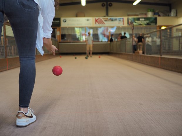 Beim Boccia-Spielen zeigen einzelne KZI-Lehrpersonen grosses Talent und eine gesunde Portion Ehrgeiz. Das Resultat lässt sich sehen. Andere haben das Nachsehen. Jedenfalls erweist sich ein gut gezielter Anschub der Kugel als sehr viel schwieriger als man erwarten könnte.