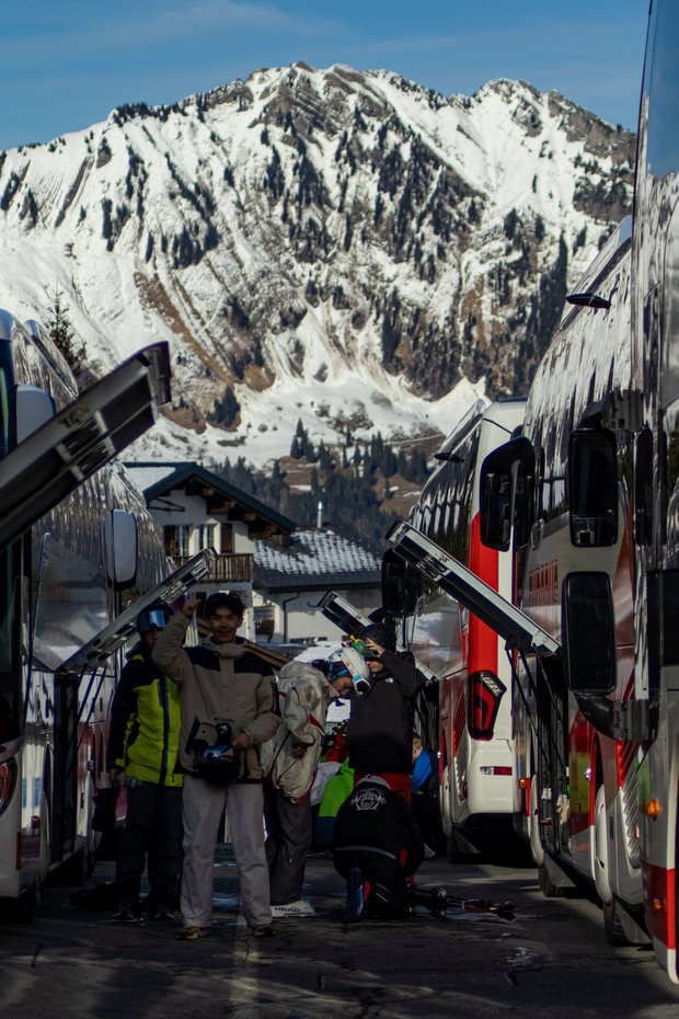 Am 14. März 2024 warteten zehn Cars direkt neben dem Bahnhof Au auf die Schüler und Schülerinnen sowie viele der KZI-Lehrpersonen. Nachdem alle Sportgeräte verstaut waren, alle einen Platz gefunden hatten, und die Carchefs die letzten Anwesenheitskontrollen durchgeführt hatten, fuhr die Car-Karawane los in Richtung Flumserberg. Die Fahrt führte uns zuerst am Walensee vorbei, von wo aus man eine wunderschöne Aussicht auf die schneebedeckten Berggipfel der gegenüberliegenden Seeseite hatte.