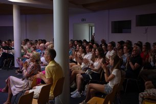 Die Zugabe zum Schluss des Konzerts mit ‘Fix You’ von Coldplay sorgte dank der zwei Soli von Lucy Lütolf und Eline Mauron für einen ganz besonderen Abschluss des Abends. Den darauffolgenden Applaus hatten sich die Musizierenden redlich verdient – strahlend (sowohl vor Glück wie auch vor Schweiss) liessen sich die Sängerinnen und Sänger des Chors sowie die Spielerinnen und Spieler der Band vom Publikum feiern – spontan mit grossem Applaus wie auch beim an das Konzert anschliessenden Apéro.