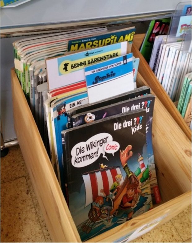 Elisabeth, 4b: Die Bibliothek, in der ich die Sozialwoche absolviere, öffnet erst um zehn Uhr, also konnte ich für einmal angenehm lange schlafen, bevor ich dorthin musste. Am Morgen, von 10-12 Uhr, wurde ich eingeführt und durfte auch schon bei der Katalogisierung und beim Einordnen von zurückgebrachten Büchern helfen. Am Nachmittag habe ich am Computer neue Beschriftungen für Comics gestaltet und dann in neue Trennwände eingefügt. Es war ziemlich entspannt und ich hoffe, dass es so weitergehen wird.