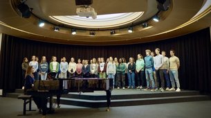 Parallel zu uns macht auch der Chor seine Aufnahmen in ähnlichem Stil. Die Aula dient ihnen als Kulisse, und für eine Abwechslung im Bildausschnitt wechseln sie auch noch zur Treppe in der Eingangshalle. Die Chorklänge in der KZI-Eingangshalle und die freudigen Erzählungen über die Dreharbeiten werden noch lange nachklingen. An dieser Stelle ein grosses Dankeschön an unseren Filmer Nenad Leonart.