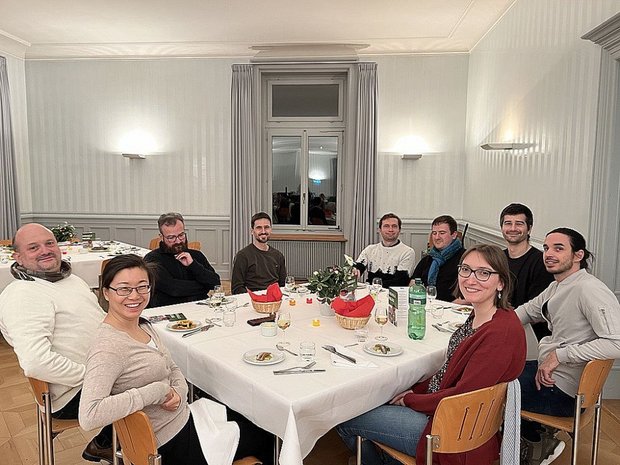 Mit acht vegetarischen und fleisch- oder fischhaltigen Gängen wurden das KZI-Team am Weihnachtsessen vom 8. Dezember verwöhnt. Es gab beispielsweise Saibling mit Gurke und Estragon oder Artischocke mit Kabayaki, Mais und Harissa. Natürlich durfte ein Nachtisch nicht fehlen – es gab Lakritze-Mousse, Cannelé und frisch gemahlenen Kaffee.