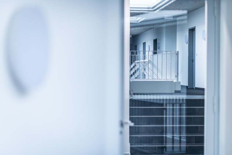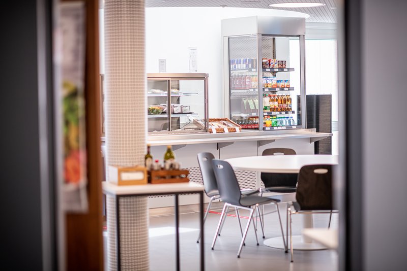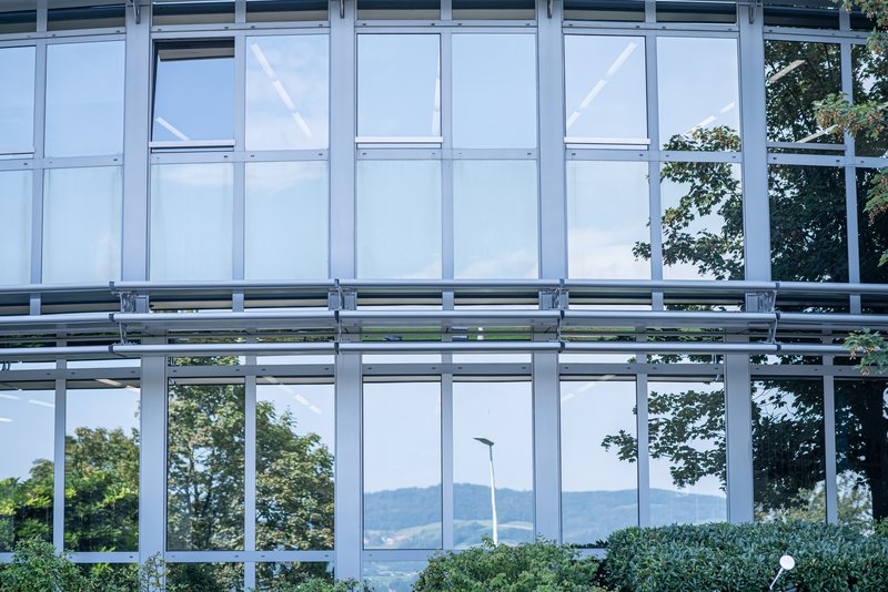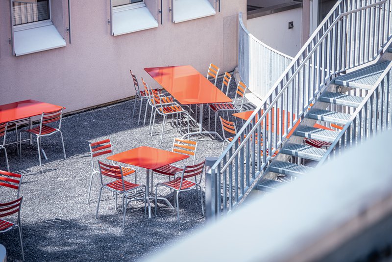 Der Campus der Kantonsschule Zimmerberg am provisorischen Standort im ehemaligen Von-Roll-Gebäude an der Steinacherstrasse ist sehr attraktiv gestaltet. Die idyllische Lage der Schule am Waldrand bietet neue Perspektiven für Unterricht und Freizeit.